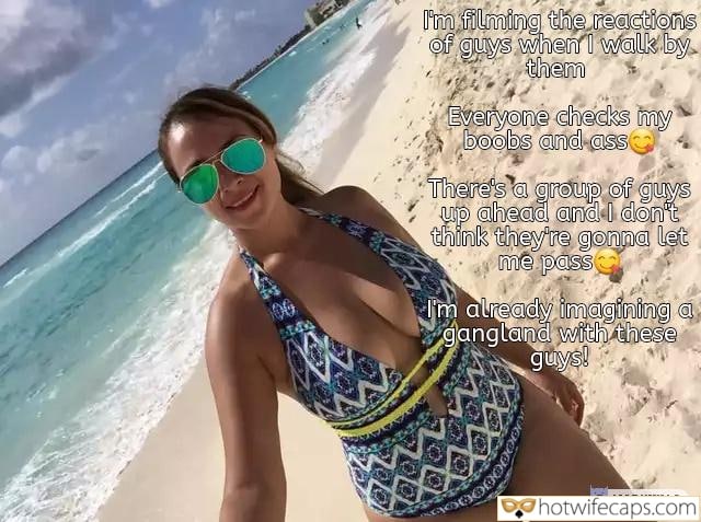 I’m filming the reactions of guys when I walk by them. Everyone checks my boobs and ass. There’s a group of guys up ahead and I don’t think they’re gonna let me pass I’m already imagining a gangland with these guys!