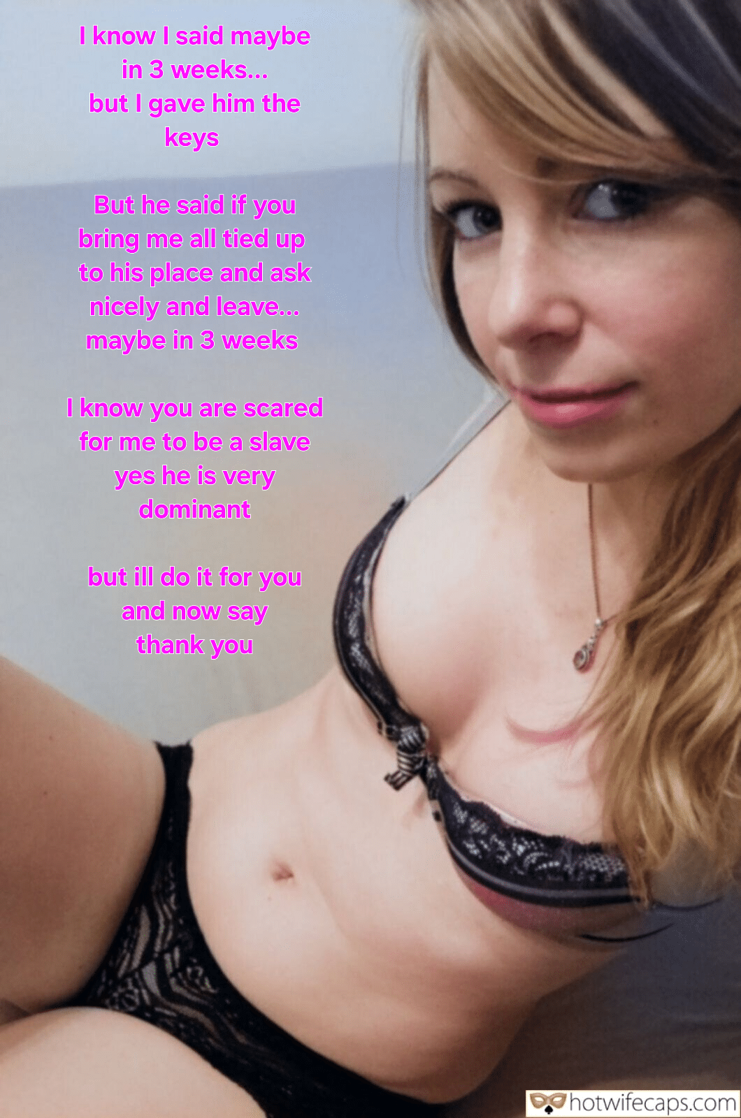 I know I said maybe in 3 weeks… but I gave him the keys But he said if you bring me all tied up to his place and ask nicely and leave… maybe in 3 weeks I know you are scared for me to be a slave yes he is very dominant but ill do … Continue reading Young Babe in Black Lingerie