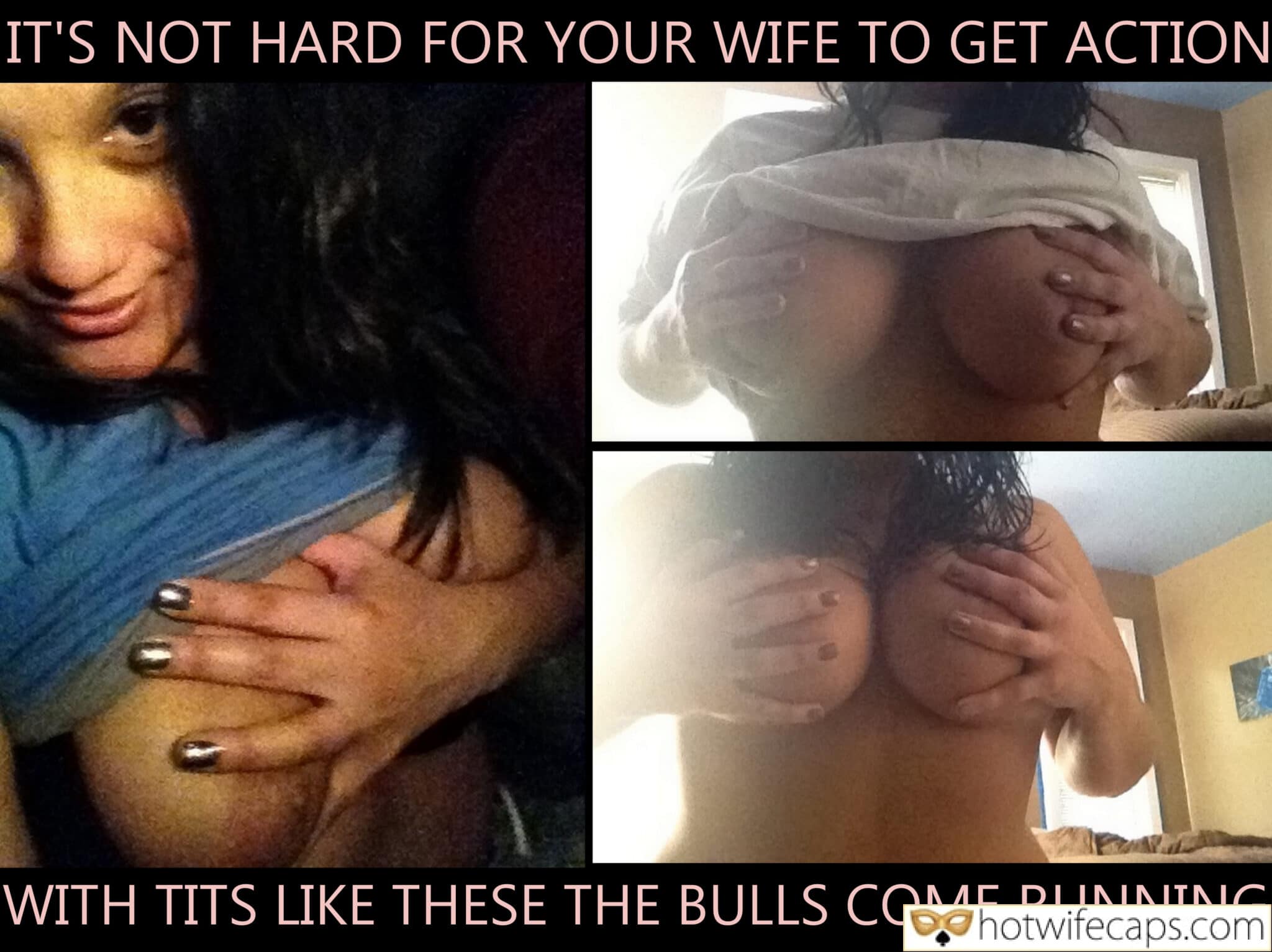 IT’S NOT HARD FOR YOUR WIFE TO GET ACTION WITH TITS LIKE THESE THE BULLS COME RUNNING!