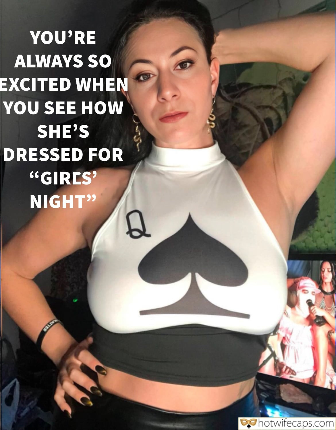 YES I’M WEARING THIS FOR GIRLS NIGHT OUT. THAT GUY KARL CELLADIABLO WILL BE THERE. I’M PRETTY SURE YOUR HOTWIFE FANTASY IS COMING TRUE TONIGHT.