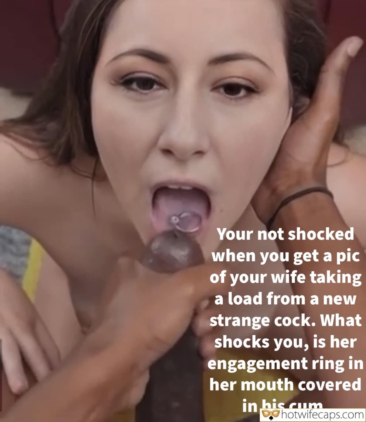Your not shocked when you get a pic of your wife taking a load from a new strange cock. What shocks you, is her engagement ring in her mouth covered in his cum.
